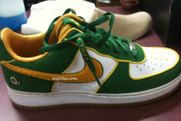 Each shoe has the chenille but what I call the "sweatshirt swoosh." The Swoosh is in the accent color on each show, here it is in the Yellow which is also brought in on the piping, inner lining and lace details.
